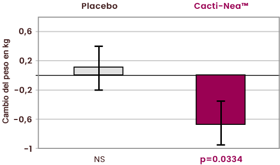 En uno de los estudios sobre la eficacia del Cacti-Nea™ participaron 49 mujeres con un índice de masa corporal normal. Las mujeres se dividieron en dos grupos. Las mujeres del primer grupo recibieron 2 g de Cacti-Nea™ al día, mientras que las del segundo grupo recibieron un placebo. Después de 28 días se demostró que Cacti-Nea™ -al contrario del placebo- reduce significativamente el peso del agua corporal y contribuye a la reducción de peso.